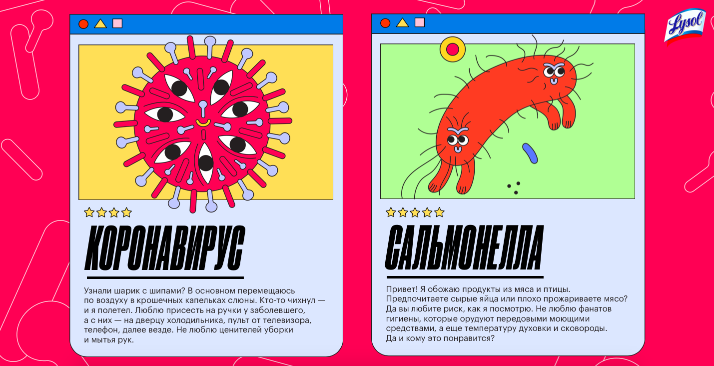 Бренду чистящих и дезинфицирующих средств Lysol было необходимо нативно интегрировать новый продукт — влажные дезинфицирующие салфетки, в жизнь целевой аудитории. Она стала более открытой к коммуникации благодаря изменениям в образе жизни на фоне пандемии. Хотя проблематика и стала более обсуждаемой, потребители все еще не знают многого о том, как защитить себя и своих близких от патогенов. Дезинфицирующие салфетки выступают как помощники в борьбе против опасностей из микромира.