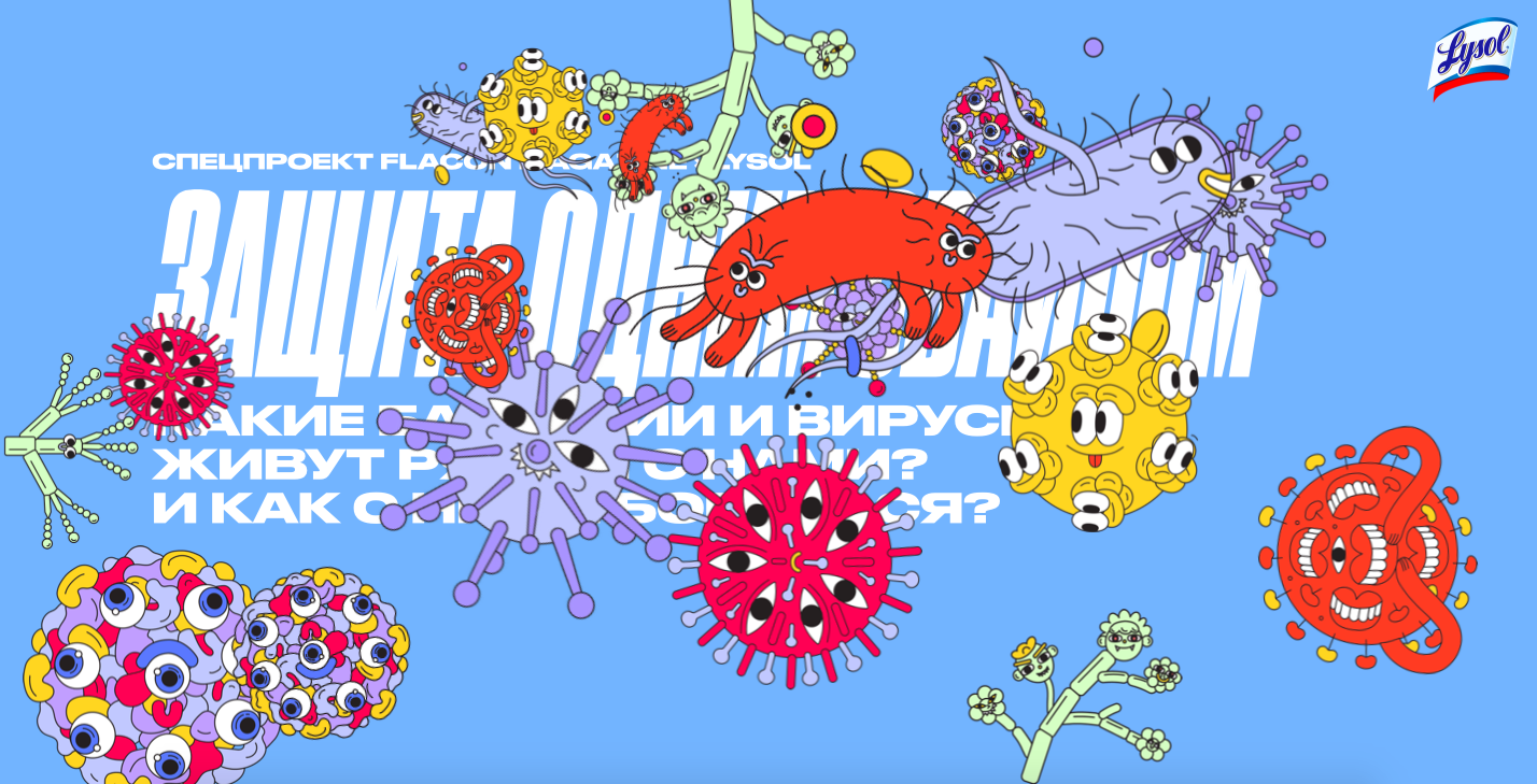 Основной задачей спецпроекта было интегрироваться на актуальную для целевой аудитории площадку с заметным материалом. Он должен был совмещать образовательную и развлекательную функцию и ярко рассказывать о проблеме наличия вирусов и бактерий вокруг нас и методах борьбы с ними. Важно было сделать это, не напугав аудиторию — а в легкой и запоминающейся форме.