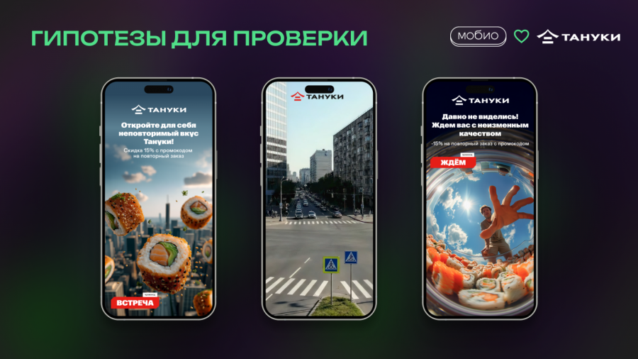 Для всех трех аудиторий использовались одинаковые форматы — баннеры и видео с единым посылом «Попробуйте новое». Под каждый сегмент было разработано по три сообщения с персонализированными предложениями и промокодами.