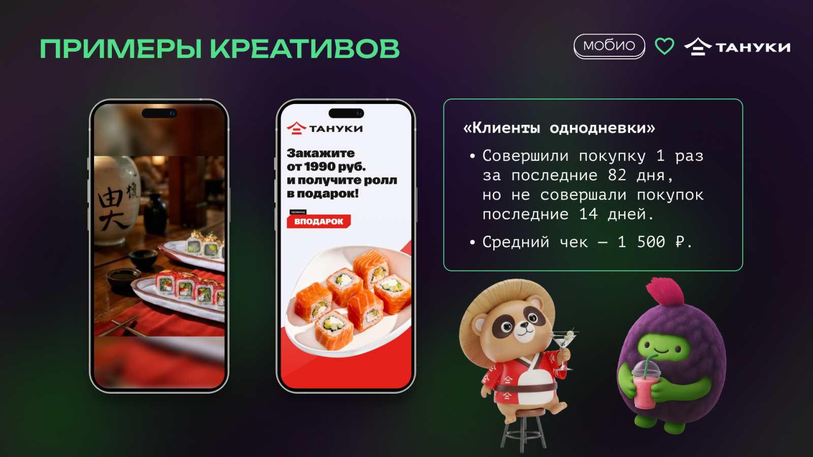 Для нас, как для диджитал-направления бренда «Тануки», ключевой задачей всегда является не просто привлечение новых гостей, но и формирование устойчивой лояльности среди существующих пользователей нашего приложения. Широкая ретаргетинговая аудитория, которой мы пользовались ранее, хоть и давала объем, но не обеспечивала нужной эффективности и ROI.