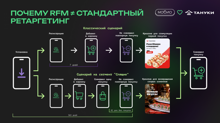 «Мобио» рассказало Sostav о том, как совместно с «Тануки» оптимизировали ретаргетинг с помощью RFM-сегментации. Вместо широкой аудитории команда выделила несколько сегментов на основе частоты и давности заказов, а также средней выручки на пользователя. Такой подход позволил персонализировать коммуникации, снизить ДРР на 29% и повысить эффективность кампаний на Android и iOS.