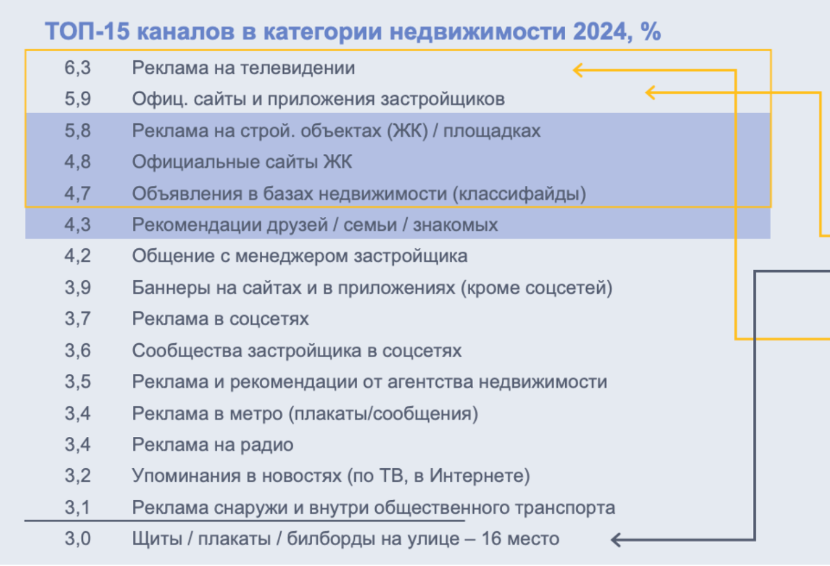 Сила бренда (Brand Equity) застройщика во многом зависит от того, где и как клиент с ним взаимодействует. Согласно исследованию ORO Connect, топ-15 каналов обеспечивают до 65% влияния на бренд, но важны не только и не столько охваты, сколько качество этого контакта — насколько он запомнился и изменил отношение к компании.