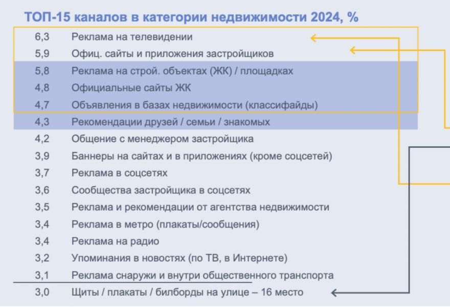 Но традиционные медиа совершенно точно рано списывать со счетов. Офлайн-реклама дает широкий охват, растит узнаваемость и влияет на имидж девелопера в долгосрочной перспективе. Быть надежным девелопером было критично важно и в 2020 году, и в 2025. Исследованиями доказано, что традиционные медиа дают больший вклад в рост данной характеристики в сравнении с другими каналами. Конечно, следует учитывать, что назваться «надежным» не достаточно, нужно также всячески подтверждать это практикой. Но эта тема тянет на отдельную статью.