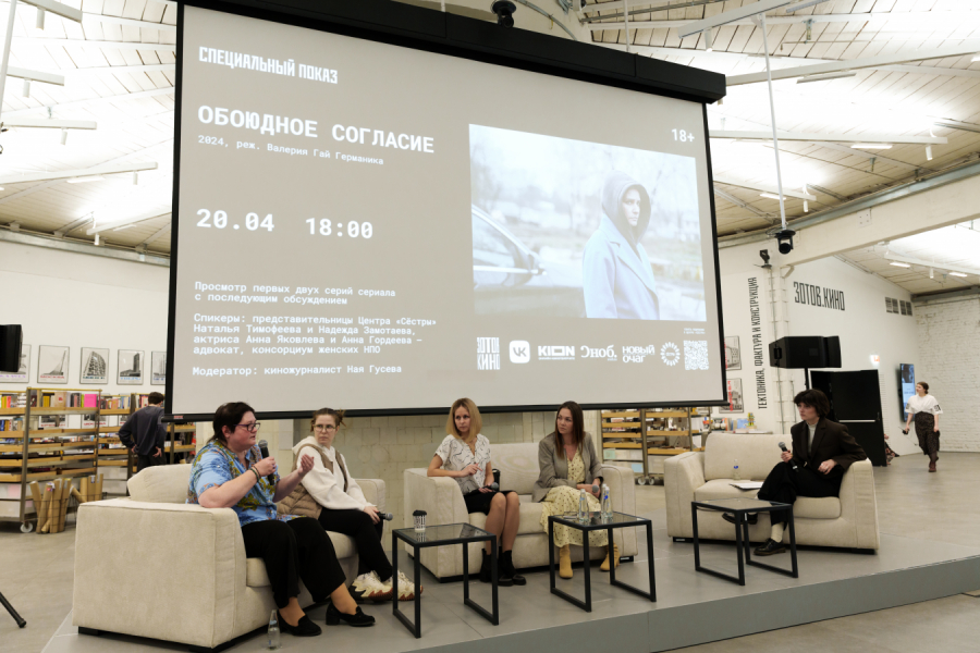 20 апреля в кинотеатре «Зотов.Кино» прошёл специальный открытый показ первых серий нового сезона «Обоюдного согласия», после которого зрители приняли участие в публичном обсуждении с экспертами центра «Сёстры», адвокатом Консорциума женских НПО Анной Гордеевой, а также психологом и актрисой сериала Анной Яковлевой. Мероприятие состоялось в рамках седьмой ежегодной «Недели #СтопСН» — просветительской инициативы, целью которой является повышение осведомлённости о проблеме сексуализированного насилия, поиск способов говорить о нём, поддерживать переживших насилие и препятствовать его проявлениям. Информационными партнерами показа выступили медиапроект «Сноб» и медиаресурс «Новый очаг». Запись паблик-тока эксклюзивно доступна в официальном сообществе KION в ВК, и уже набрала более 500 тысяч просмотров.