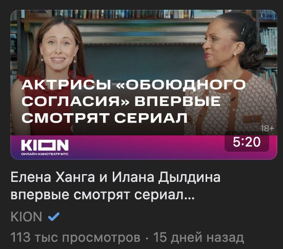 KION — часть экосистемы МТС, и этот факт открывает огромное пространство для креатива и коллабораций. Вместе с коллегами из проектов Строки и МТС Музыка команда KION подготовила публикации, привлекающие внимание пользователей к новому сезону «Обоюдного согласия». В сервисе МТС Музыка появился плейлист с треками из сериала, а в Строках — подборка книг в стиле детективной драмы Валерии Гай Германики. Суммарный охват интеграции превысил 60 тысяч.