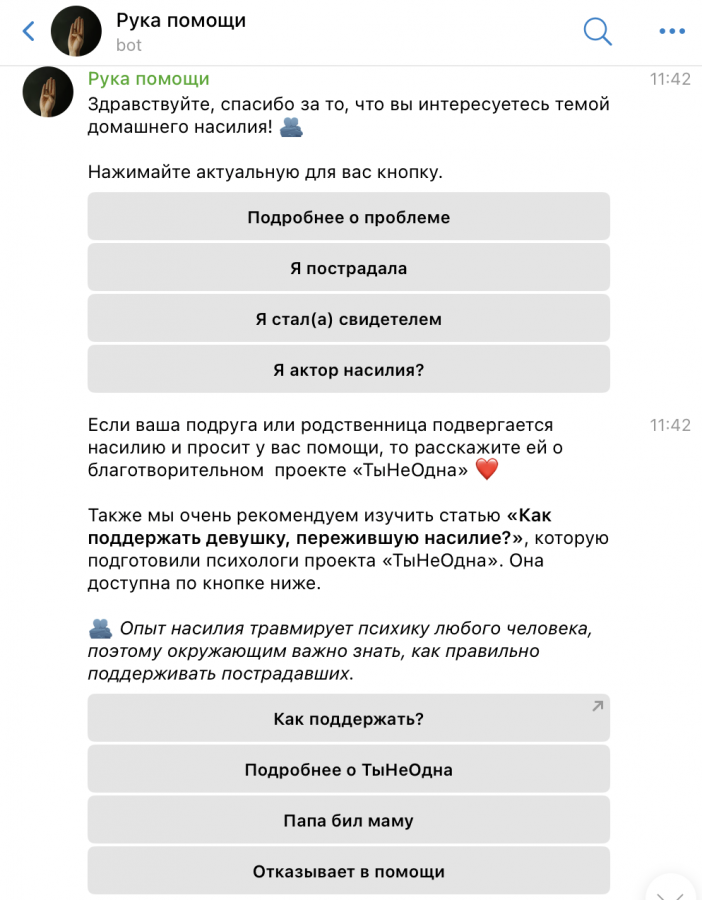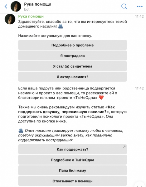 Чат-бот «Рука помощи» для столкнувшихся с домашним насилием