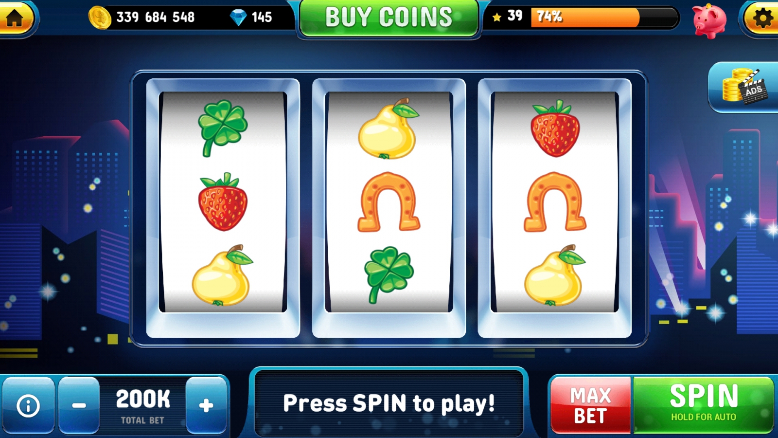 В последнем на данный момент билде реализовано 10 игровых автоматов, среди которых есть трёх- и пятибарабанные слоты.