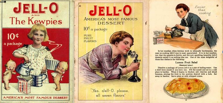 Еще одна публикаторская история бренда, у нас малоизвестная. В 1904 году американская компания Jell-O, выпускающая желатиновые десерты, начала издавать книгу рецептов Jell-O Cookbook. Комивояжеры, продававшие желатиновые порошки, дарили ее хозяйкам.