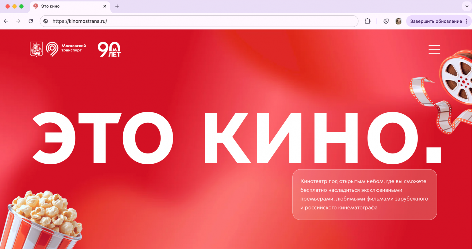 Каждый из новых видов Московского транспорта доставляет вас в нужную точку и оставляет эмоции от современного и технологичного способа передвижения. Для кинотеатра команда агентства придумала концепцию «Это кино.», в которой Московский транспорт открывает новую точку на маршруте летнего отдыха, где можно наслаждаться премьерами, любимыми фильмами или даже пройти обучение в «Школе блогеров».