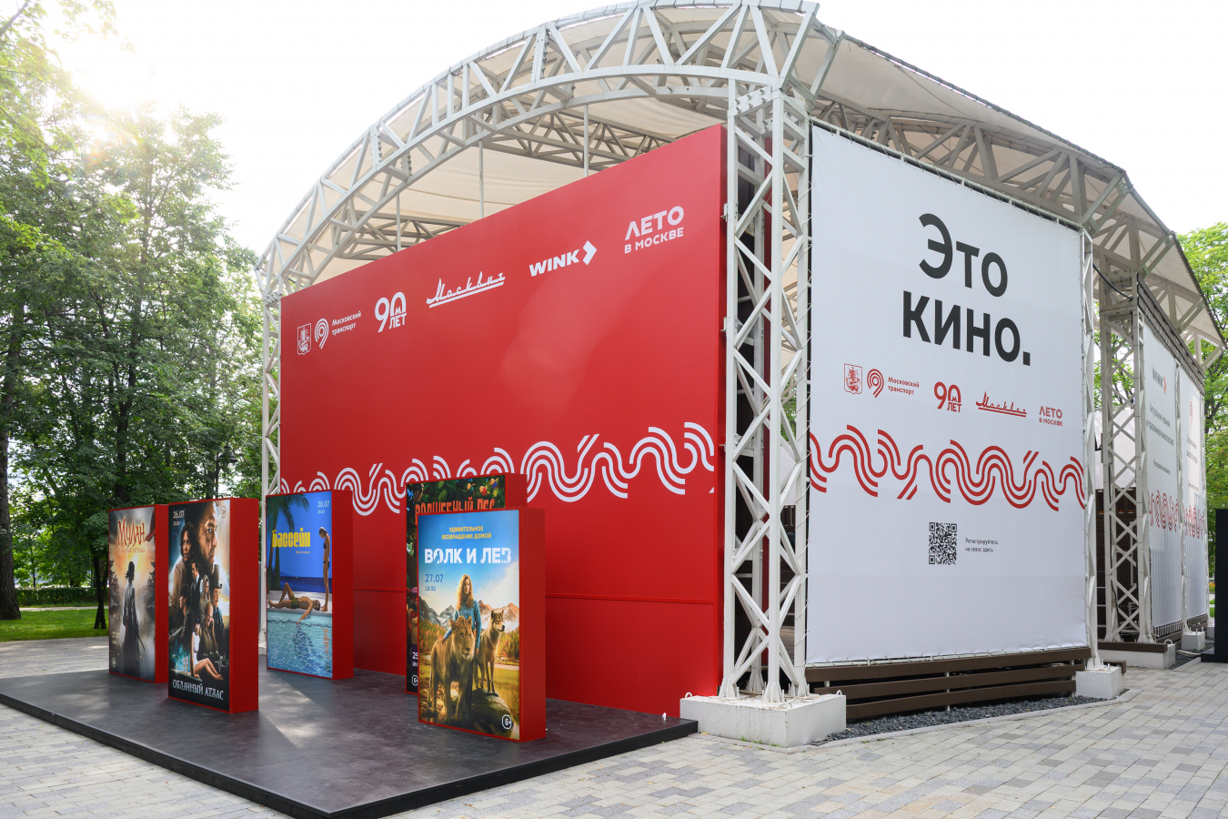 Кинотеатр встретил первых гостей в июле 2025 года. Мы забрендировали кинотеатр и площадку вокруг него, включая фотозону, разработали дизайн промоформы.