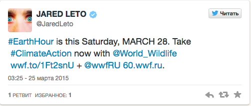 На своей странице в Twitter акцию поддержал посол WWF – певец и актер Джаред Лето. Солист группы Thirty Seconds To Mars напомнил поклонникам о мероприятии и дал ссылку на страницу WWF, где любой желающий может поддержать акцию одним из двух способов: отметить свою свечу на карте или подписавшись под обращением Фонда за спасение Арктики.