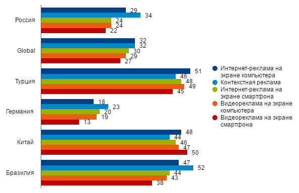 | Нативная реклама | 49 | 45 | 65 | 39 | 54 | 50 |