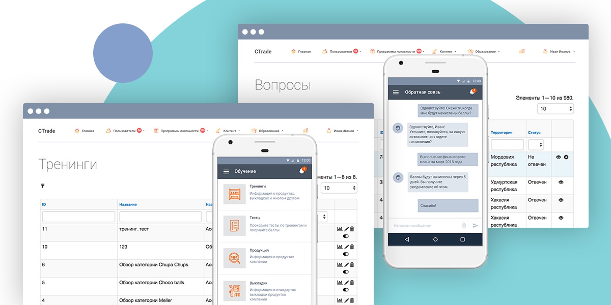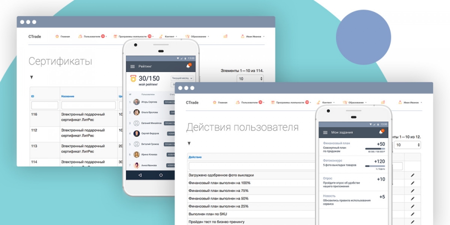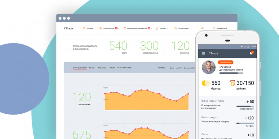С другой стороны, мы продумывали игровые сценарии и старались превратить рутинный процесс товарооборота в игру. В ходе работы сотрудники отправляли отчёты о достижении целей, загружали фото с выкладками продукции в магазинах, проходили обучение, читали новости и за каждое действие получали от команды нашего клиента баллы, которые позже переводились в деньги .