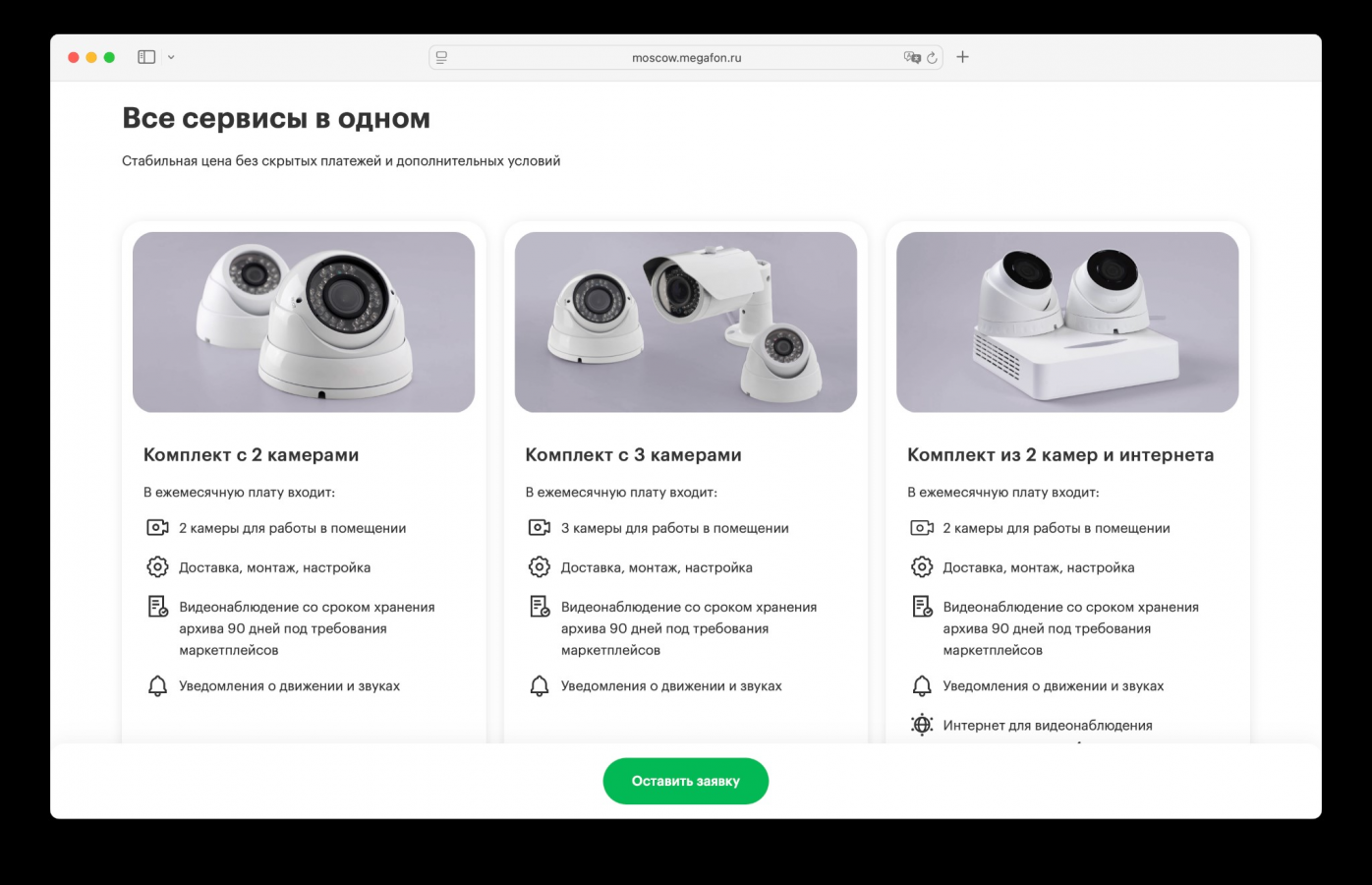 Одновременно анализировали существующие на рынке предложения по видеонаблюдению. Изучили требования к оборудованию ПВЗ и пожелания их владельцев. С помощью инсайтов составили план доработки продукта, который так же повлиял на обновление сайта «МегаФон ПроБизнес».