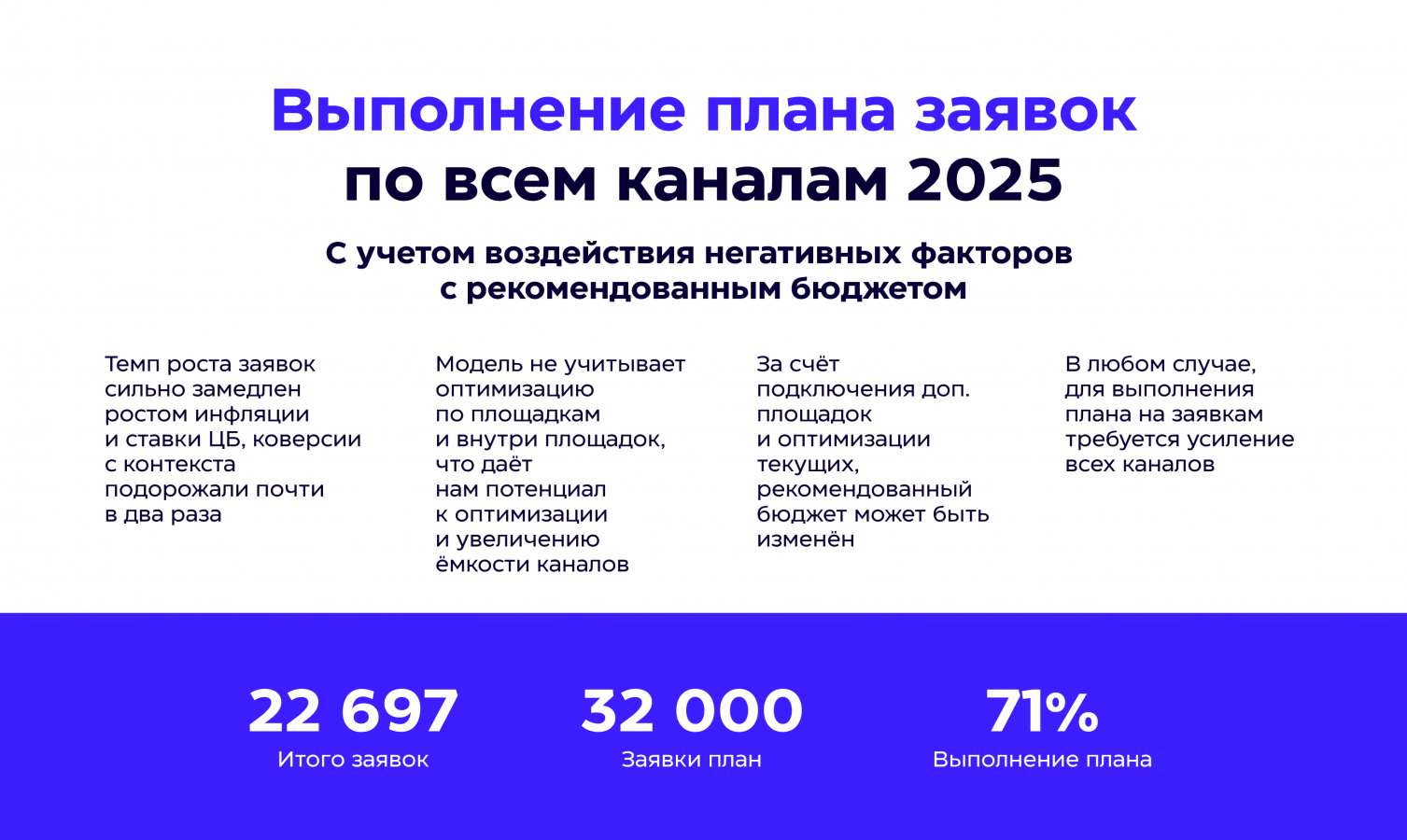 - Оценить, как негативные внешние факторы могут повлиять на замедление роста заявок.