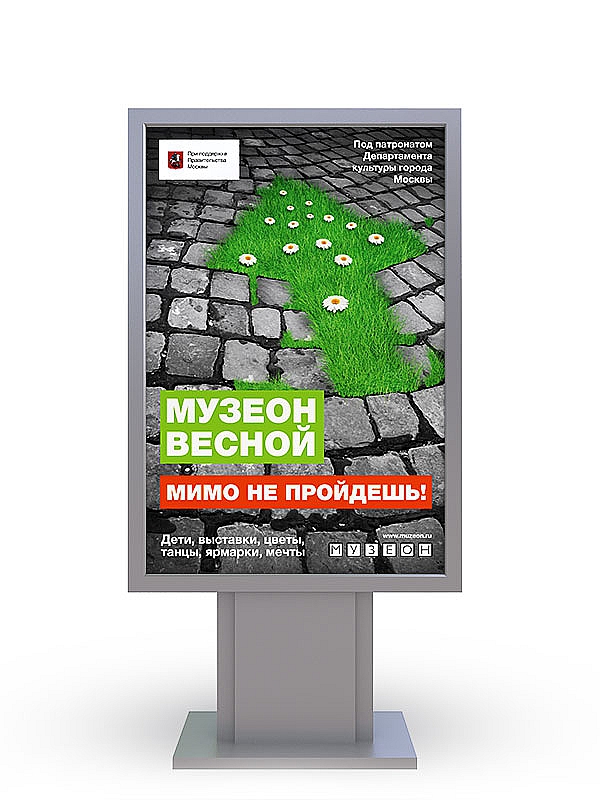 Для оформления полиграфических и рекламных материалов было выбрано экологическое направление. Печать в одну/две краски, использование бумаг вторичной переработки. Также была разработана общая система навигации для парка, удобная для посетителей и согласующаяся с общей архитектурной концепцией. Общее шрифтовое оформление и использование черно-белых иллюстраций подчеркивает связь парка МУЗЕОН с искусством ХХ века, его уникальную роль в культурной жизни Москвы.