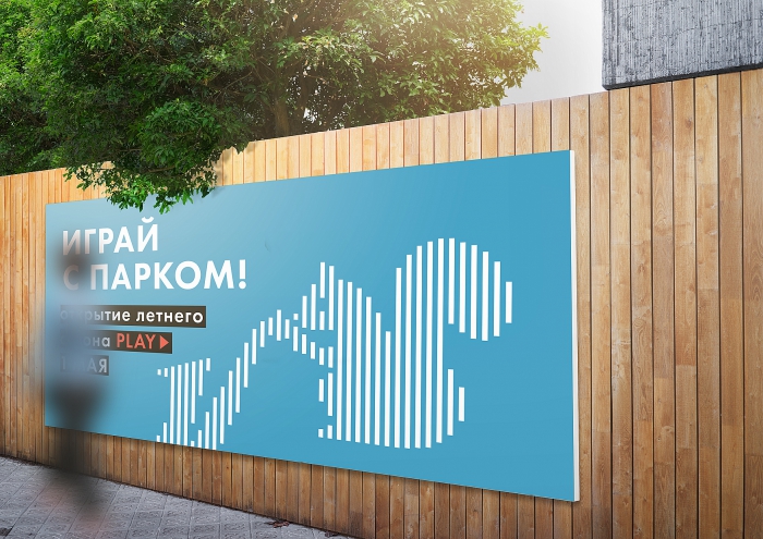 Затем был крупный проект – открытие летнего сезона, для которого нам предстояло разработать единую концепцию. Здесь нам предоставили возможность абсолютного полета фантазии. Родилось очень много разных вариантов и в итоге мы остановились на варианте ИГРА-PLAY: «Играй с парком, играй в парке».