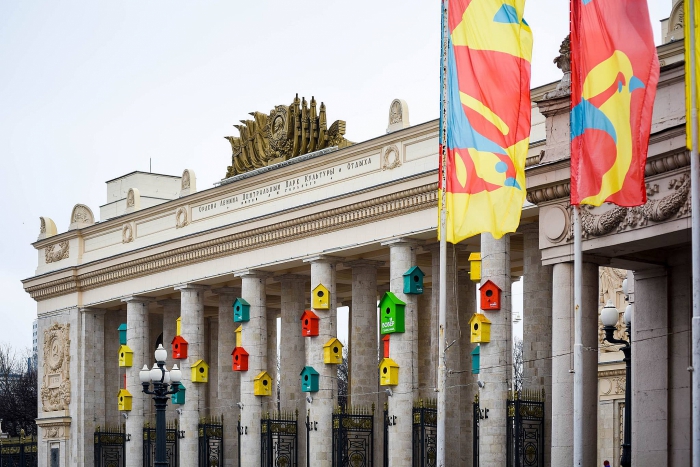 Самыми точными в плане настроения, по мнению заказчика, стали символы весны – инсталляции со скворечниками. Для каждого парка – свои. Для усиления весенней атмосферы в течение нескольких дней на главном входе из динамиков звучало птичье пение.