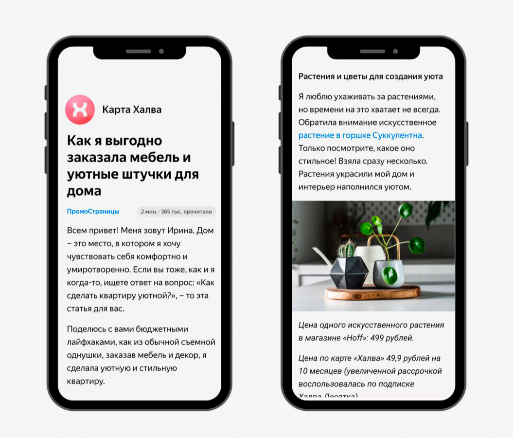 Содержание. В «ПромоСтраницах» пользователям нравится формат личных историй. «Совкомбанк» провёл интервью с клиентом и написал статью от его лица. Рассказ не выглядит рекламой продукта: человек делится лайфхаками, которые помогли ему преобразить квартиру, и подсвечивает преимущества карты «Халва». Читатели получают пользу и параллельно узнают о продукте.