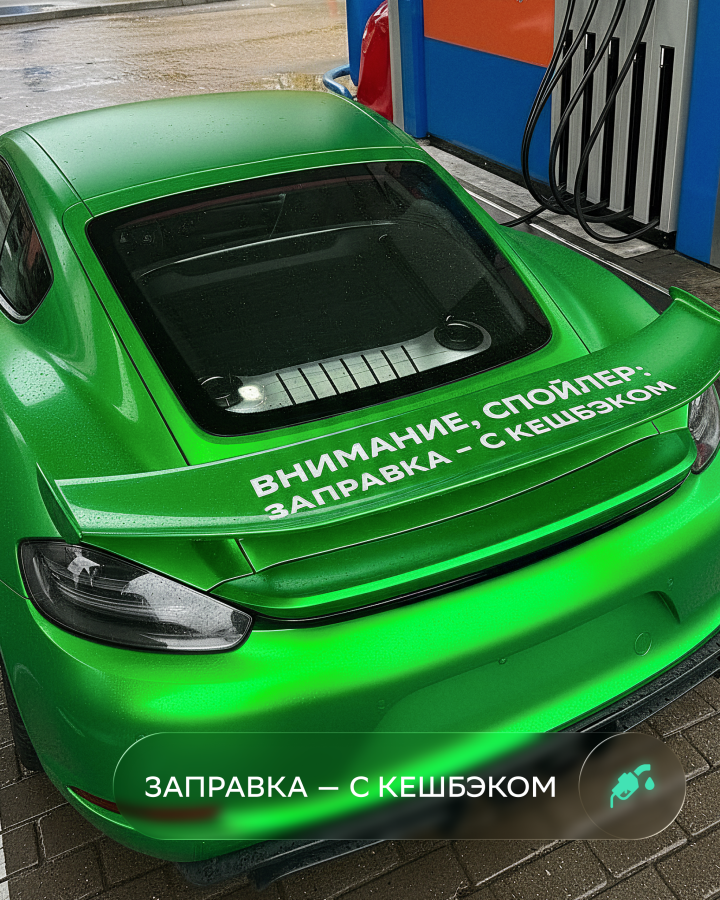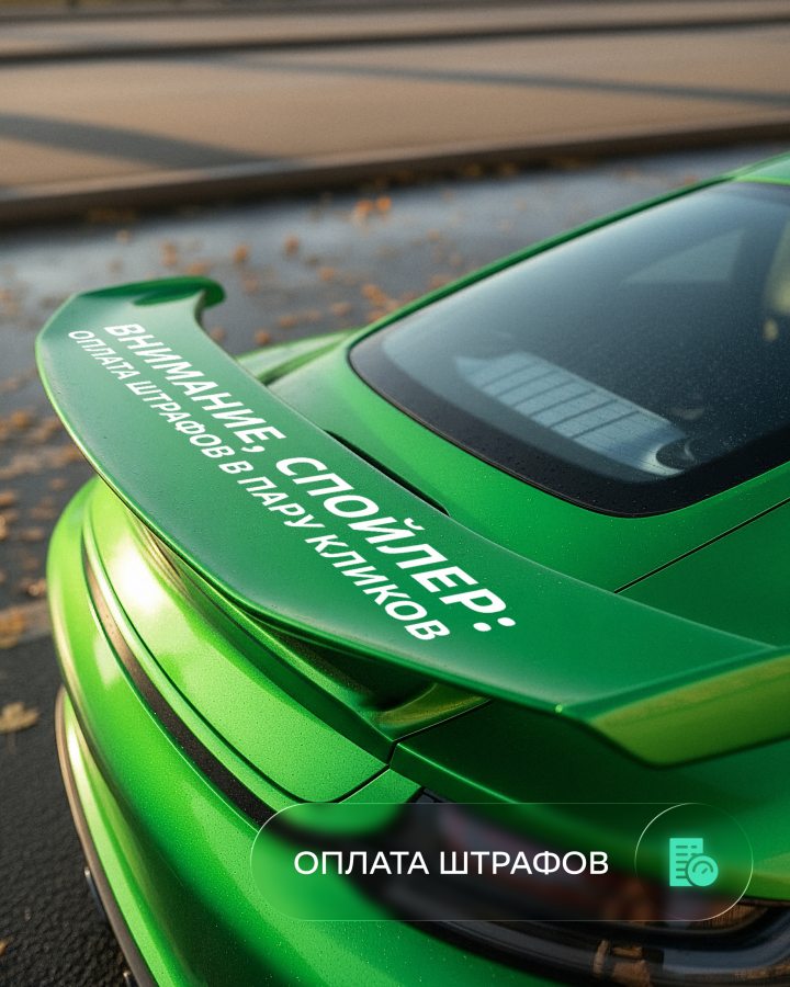 Механика: По городу запустили брендированные спорткары с уникальными спойлерами. На спойлерах в динамическом режиме сменялись ключевые преимущества раздела «Авто»: «ТО с выгодой до 30%», «Оплата штрафов в пару кликов», «Заправка — с кешбэком». Автомобили появлялись на узнаваемых локациях, а их прогон по Москве прокатился по релевантным для автолюбителей Телеграм-каналам.