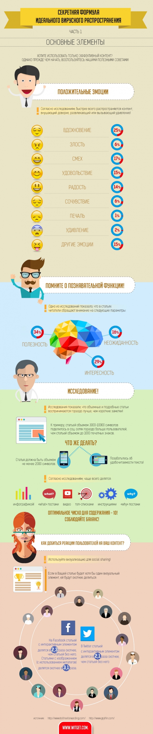 Чем активнее всего делятся в социальных сетях? Как сделать материал таким, чтобы его отправили друзьям? Специалисты компании Witget, которая предлагает инструменты соцшаринга и другие инструменты повышения конверсии, на основе своего опыта и подготовили специально для читателей Sostav.ru инфографику о секретных способах сделать контент таким, чтобы им хотели поделиться.