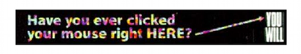 Любопытно, что баннер не вел на сайт рекламодателя: когда пользователь нажимал на рекламу, он попадал на виртуальную экскурсию по семи величайшим музеям мира. Идея, лежащая в основе кампании, заключалась в том, как AT&T может помочь в путешествии во времени и пространстве через Интернет. Баннер был размещен на три месяца за $30000. Эффект был потрясающий: 44% пользователей совершали переход по ссылке.