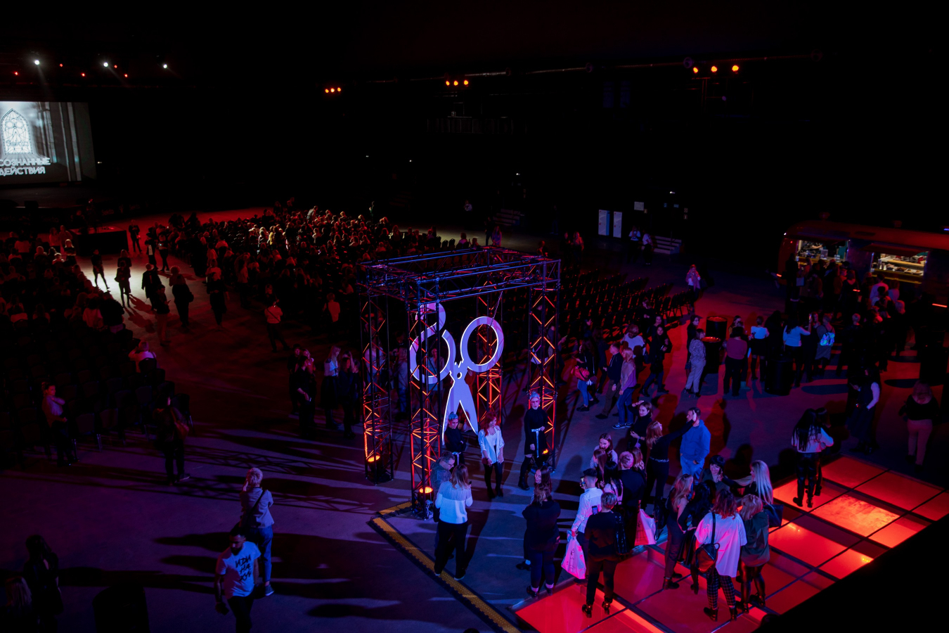 В огромном пространстве площадью 3000 м2 организаторы установили алтарь — огромную треугольную черную сцену, стрелой вонзающуюся в тысячу сидячих мест для паствы. Фоном стал экран, на котором демонстрировался специально созданный графический контент для каждого проповедника — спикера.