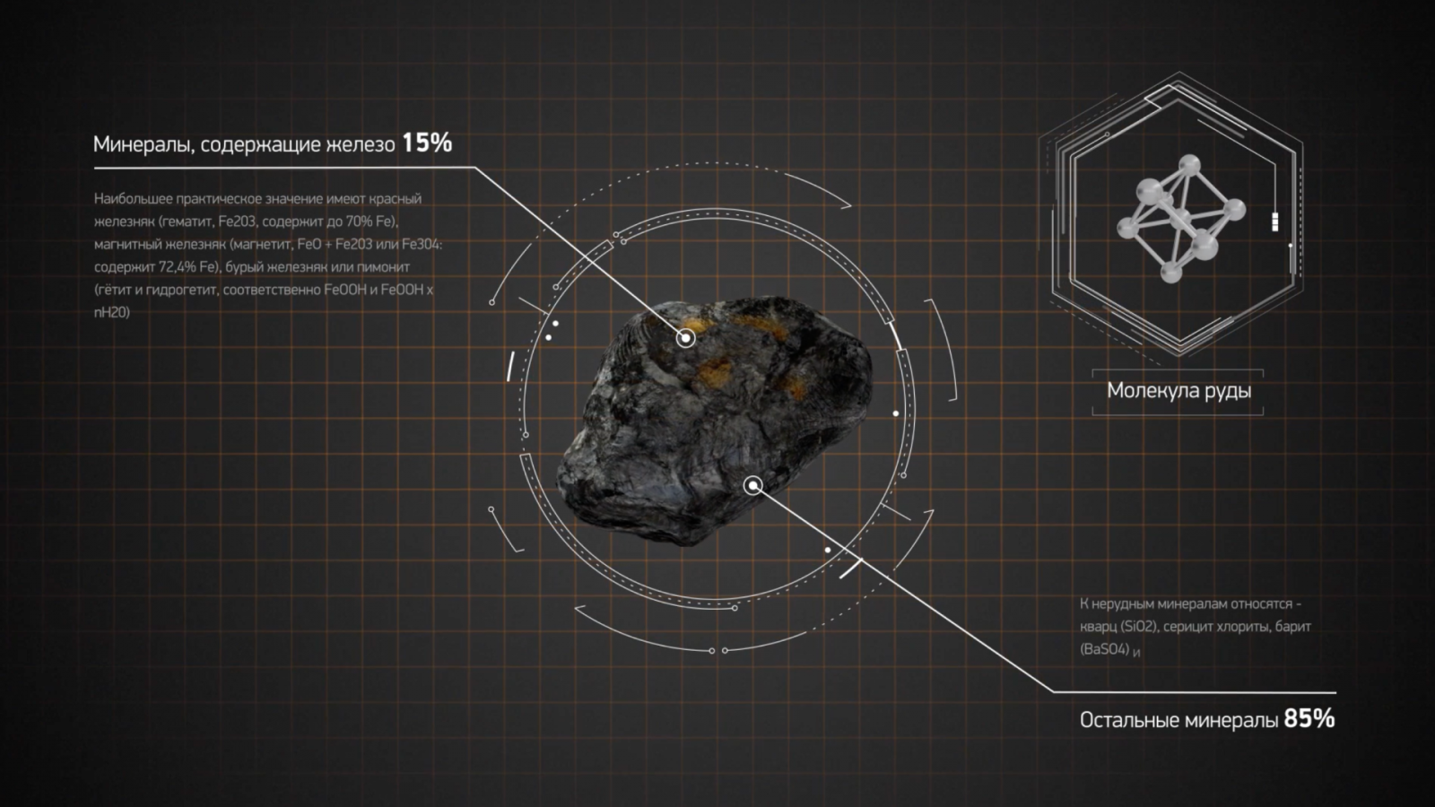Ролик поделен на четкие разделы в соответствии с этапностью процесса производства руды. Такая простая логика и поясняющие титры помогают удержать внимание зрителя на сложном контенте.