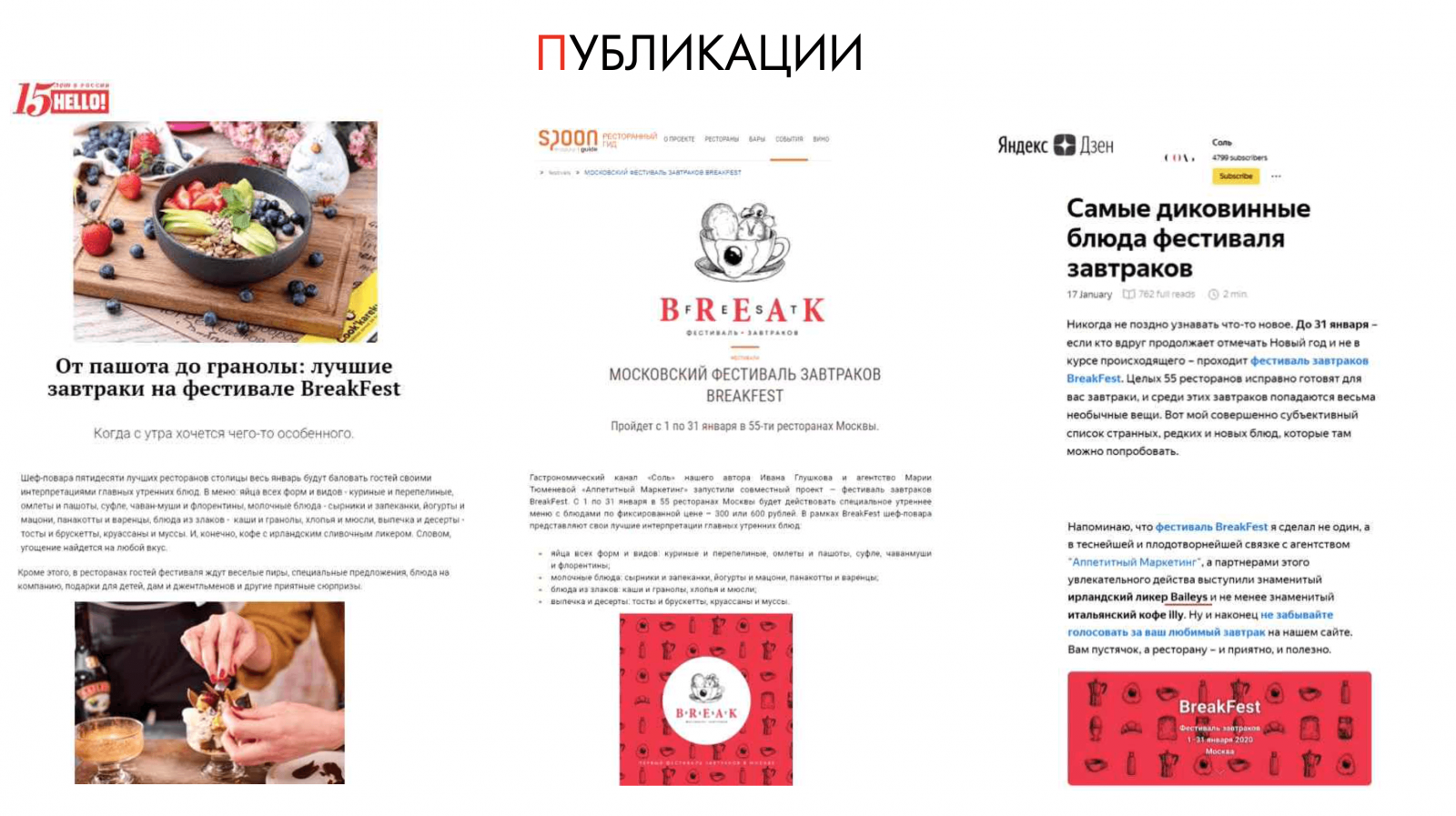 Аппетитный Маркетинг » совместно с порталом «Соль» ежегодно проводит гастрономический фестиваль BreakFest. Благодаря этому событию рестораны привлекают клиентов даже во время январского затишья: за три года проведения его участники более 130 тыс. раз продали клиентам специальное утреннее меню в первый месяц года. Команда агентства раскрыла Sostav концепцию события и детали продвижения фестиваля.