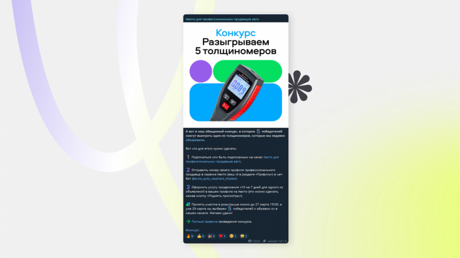 Подводить результаты можно через рандомайзеры, специальных ботов или выбирать победителей вручную, если это возможно. Также можно провести розыгрыш при помощи встроенного инструмента Telegram Giveaway — максимально простой и рабочий вариант разыграть премиум-подписку мессенджера среди аудитории. Важно чётко обозначать все нюансы в правилах: сроки проведения и получения призов, кто платит налоги, какая методология розыгрыша. В общем, делать всё максимально открыто и небюрократично, чтобы повысить лояльность участников.