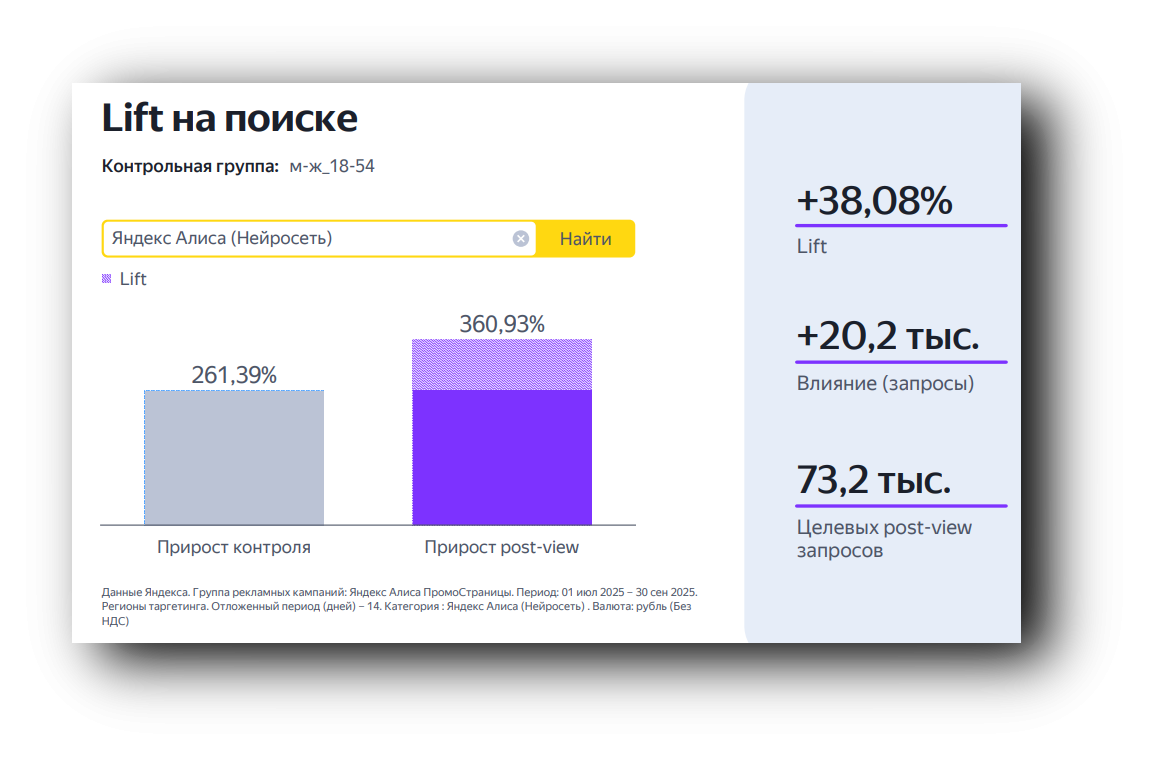 Помимо этого, размещение в «ПромоСтраницах» дало прирост поисковых запросов с июля по сентябрь на 38%, то есть помогло увеличить интерес к нейросети.