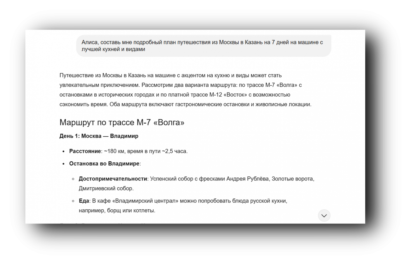 Сегментирование контента под целевую аудиторию. Например, из более крупной статьи с 5 историями о том, как нейросеть помогала в разных ситуациях, сделали 2 коротких текста на наиболее актуальные весной и летом темы: «Как дешевле путешествовать, пользуясь нейросетью» и «Как "Алиса AI" помогла составить план питания и тренировок для похудения». В каждом тексте отразили только одну историю. Текст о похудении принес наибольшее количество новых посетителей и пользователей чата за период размещения, текст о путешествии стал вторым по CR в новых посетителей и третьим по CR в пользователей чата. Обе статьи продолжают эффективно работать из месяца в месяц.