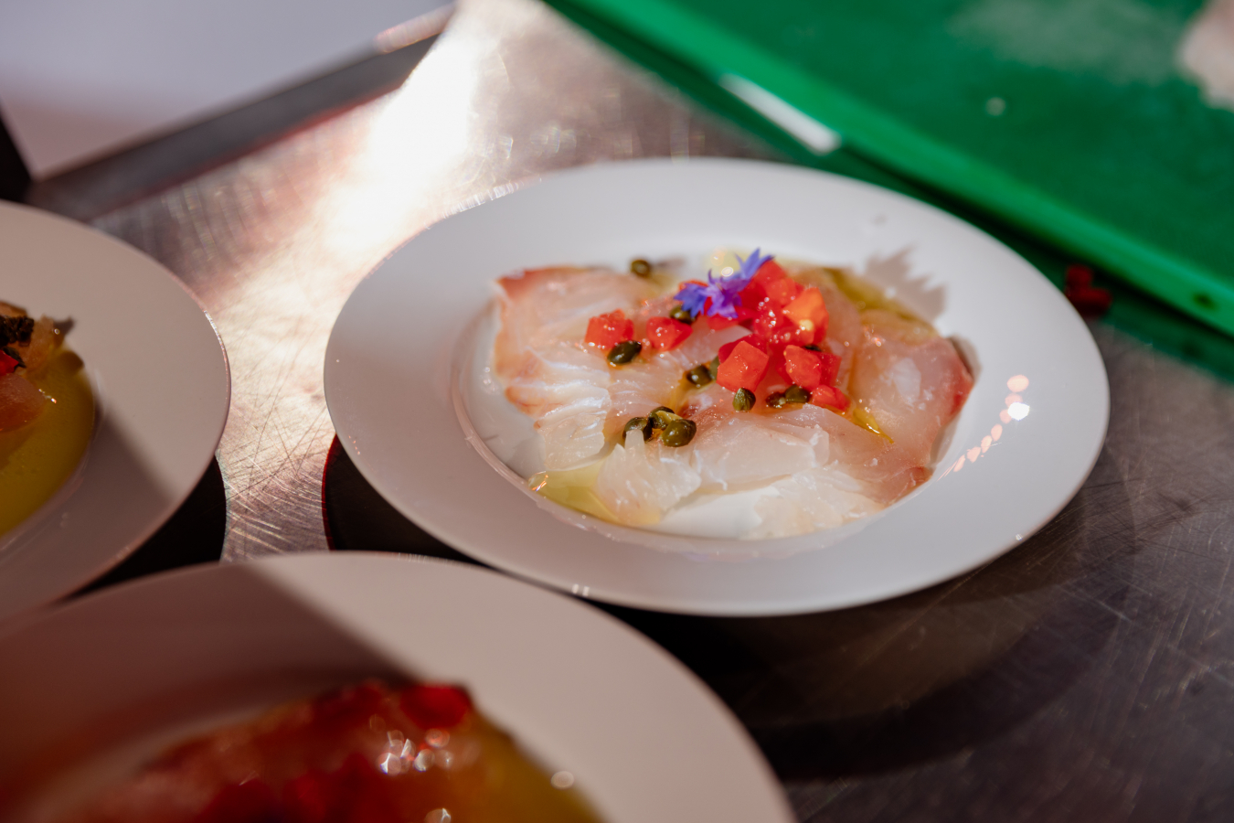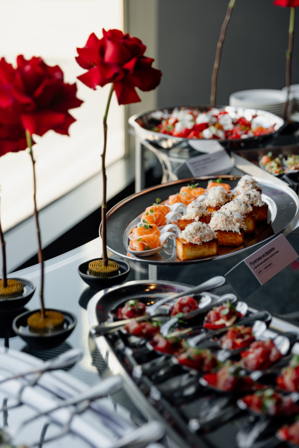 Гастрономическая часть была не менее впечатляющей. За нее отвечал бренд-шеф Дмитрий Париков, который провел иммерсивное шоу-дегустацию для гостей. На мероприятие была привезена свежая рыба из Марокко, и гости могли наблюдать за тем, как шеф и его команда в режиме реального времени готовили севиче и крудо. Это был уникальный опыт для всех присутствующих, который добавил вечеру кулинарной магии.