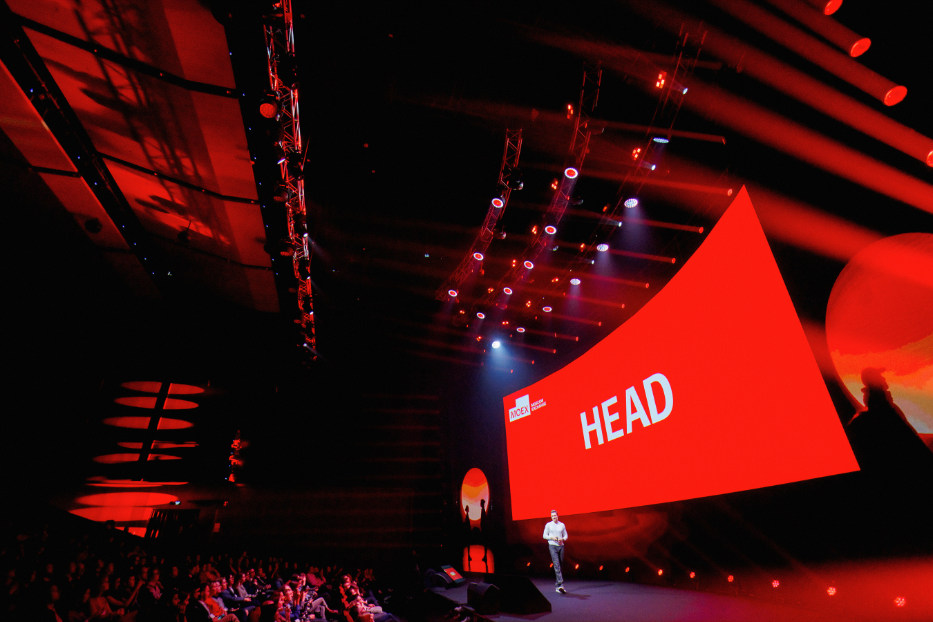 «Для максимальной глубины ощущений и погружения в атмосферу новой экосистемы решили использовать трехсоставной экран, на центральной части которого демонстрировалась презентация, а на периферии возникали сопровождающие образы и элементы, усиливая ключевой смысл мероприятия в новом key visual. Органично подобранное музыкальное решение позволило расставить необходимые акценты и придать событию динамики», — рассказывает Михаил Пономаренко, дизайн-директор студии hh.ru.