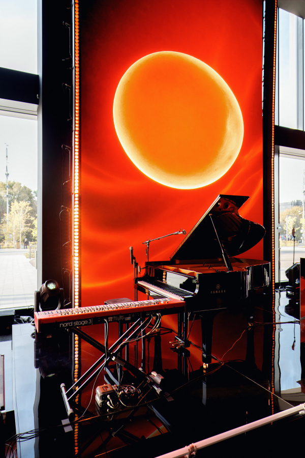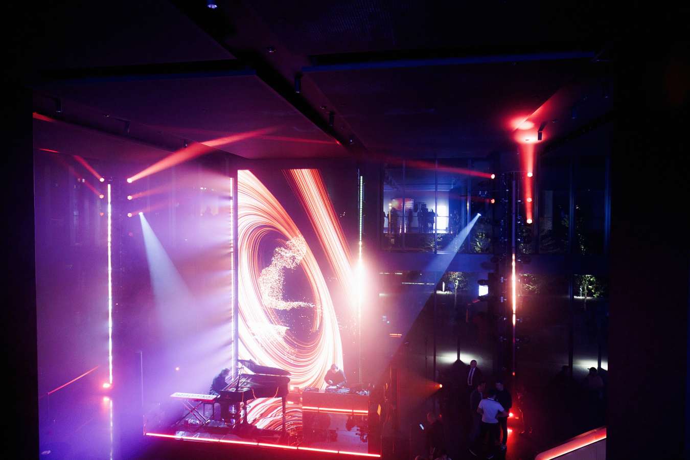 Мероприятие стало не только платформой для обсуждения новых трендов в HR-tech, но и пространством, где технологии и искусство слились воедино. Одна из ключевых «фишек» события — мультимедийное шоу неоклассического пианиста, который написал ряд произведений специально для вечерней программы. Выступление сопровождало технологическое решение по генеративной графике, созданной с помощью нейросетей. Визуальные элементы реагировали на музыку в реальном времени, создавая живое воплощение мелодии и погружая гостей в захватывающую аудиовизуальную вселенную.