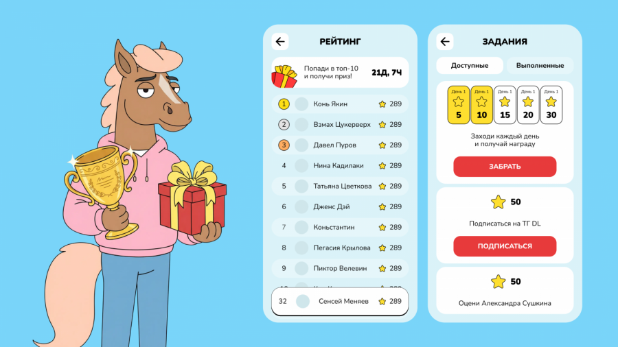 Количество очков влияло на позицию в рейтинге, а чем выше место — тем ценнее призы: размещения на Sostav, скидки на обучение, настольные игры «Титаны рекламы».