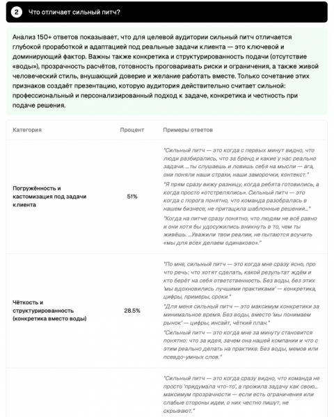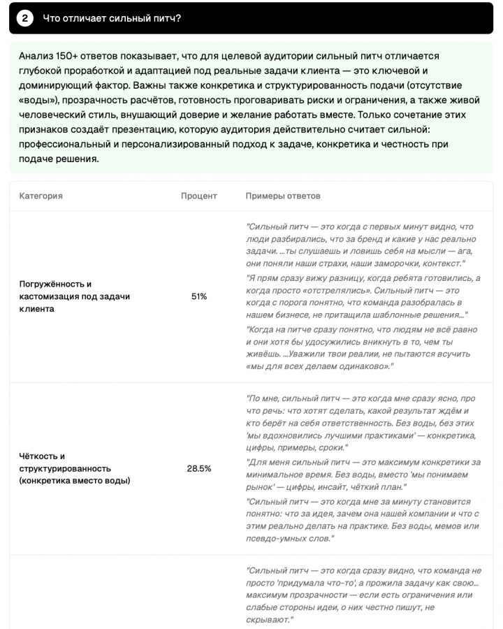 На пилотном тестировании одно из креативных агентств проверило через сегмент две концепции позиционирования перед подачей на тендер. Цифровые респонденты выявили, что одна из концепций воспринимается как «категорийный штамп» — слишком похожа на то, что уже делают конкуренты. Команда переработала подход и в итоге выиграла тендер.
