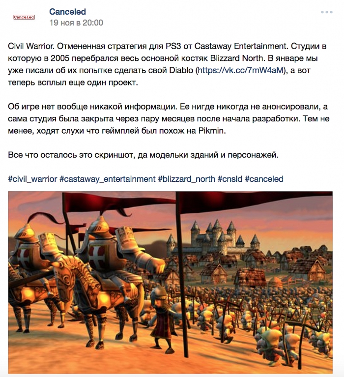 - Canceled — в сообществе собрана информация по невыпущенным играм, альфа/бета-версиям, вырезанному контенту и концепт-артам. Всё то, что так и не вышло в свет, но заслуживает внимания;