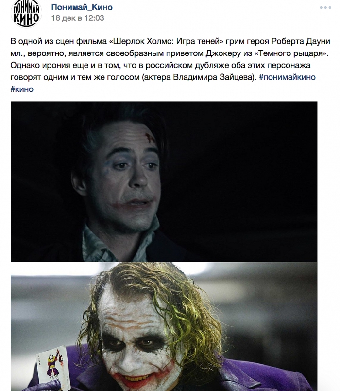 - В сообществе Понимай кино собраны пасхалки из фильмов, скрытые послания режиссеров, отсылки к старым классическим лентам и литературным произведениям;