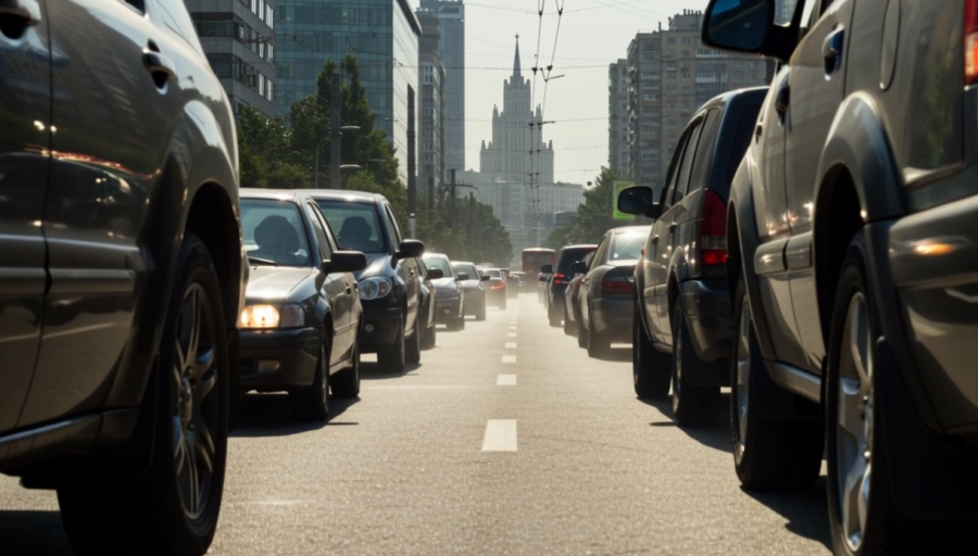 - Застрявшая в московской пробке девушка.