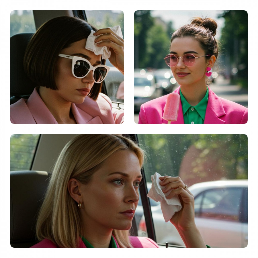 Для «бизнес-волчицы» из сцены в пробке перебрали десятки вариантов причесок и аксессуаров, пока не получили нужный баланс харизмы и узнаваемости.