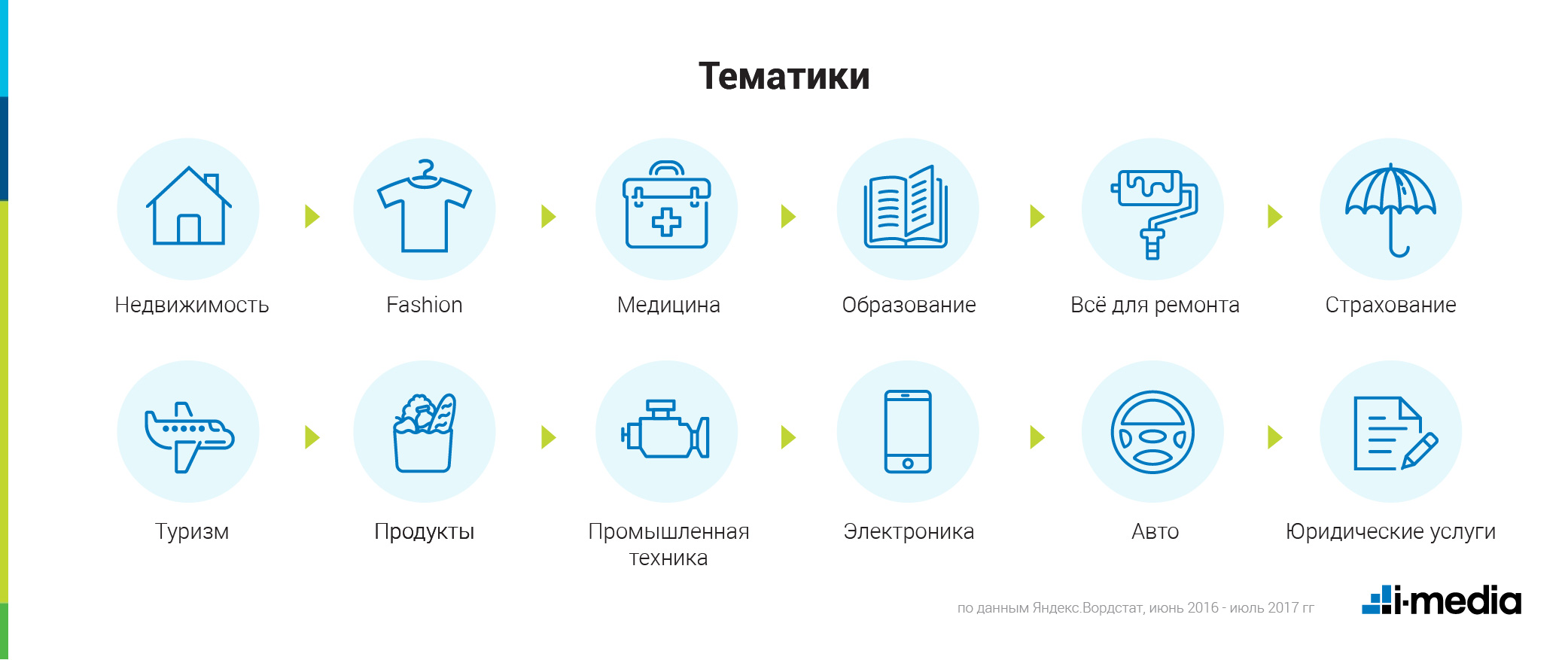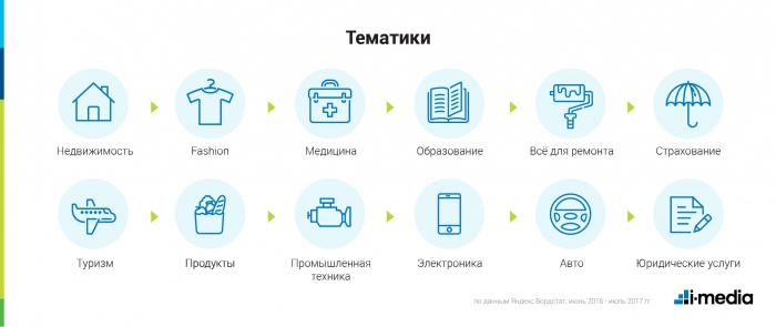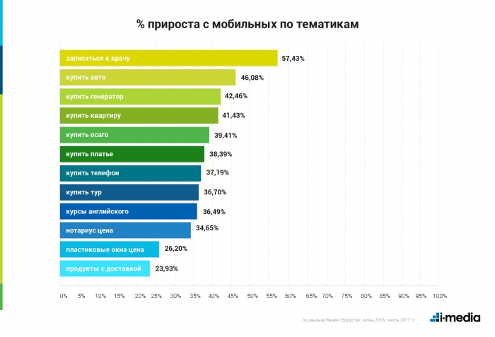 Исследования темпов роста мобильного трафика регулярно обновляются, однако актуальных цифр по росту мобильного трафика в разрезе тематик не появлялось уже давно. Чтобы быстро определить общий тренд, i-Media решило обратиться к самому доступному источнику с большой сегментированной статистикой – сервису Яндекс.Вордстат.