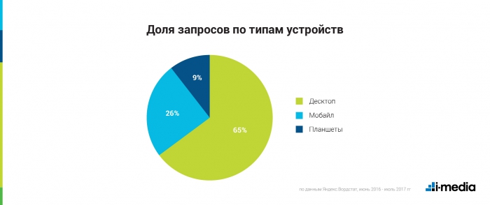 Как видим, количество запросов со смартфонов пока составляет меньше 30% от общего числа.