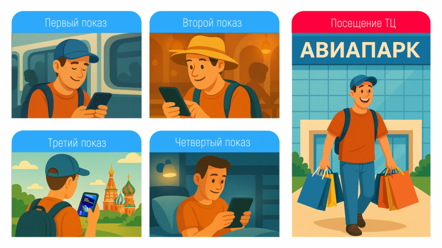 Но главное — мы увидели реальное влияние на поведение людей. Посещаемость ТЦ «Авиапарк» в период кампании выросла на 117% по сравнению с предыдущим периодом. Интересно, что максимальная конверсия наблюдалась у тех, кто видел рекламу четыре раза — каждый второй из этой группы в итоге посетил торговый центр.