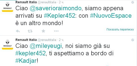 Особенную популярность Kepler-452b получил в соцсетях у жителей Италии. К бурному обсуждению подключился итальянский аккаунт автопроизводителя Renault.