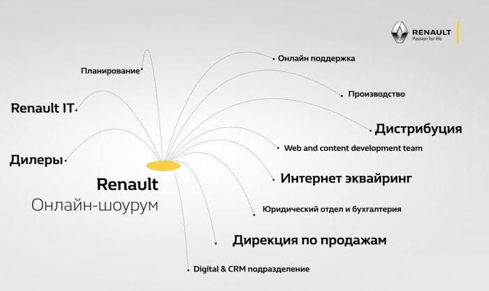 Главный результат в том, что амбициозный и дерзкий проект реализовался по полной программе — удалось создать полноценный маркет-плейс, работающий интернет-магазин для продукта, который прежде в России таким образом никто не продавал. Как дополнительный бонус, компания теперь может полностью отследить путь покупателя — от первого захода на сайт до получения выбранного автомобиля, анализировать эту информацию и улучшать эффективность продаж. А самый очевидный показатель успешности проекта в том, что совсем недавно в он-лайн продажу поступил еще один автомобиль: Renault Duster. Значит, новое направление на рынке востребовано и будет развиваться.