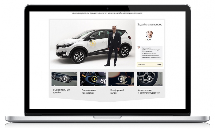 Для покупателя это, несомненно, экономия времени на поездки в салон дилера. Половина клиентов Renault Россия покупают новые автомобили без тест-драйва, так зачем им тратить лишнее время на личное общение с продавцом? Фиксированные условия покупки: цена выбранного автомобиля не увеличится за то время, что покупателю потребуется, чтобы доехать до салона.