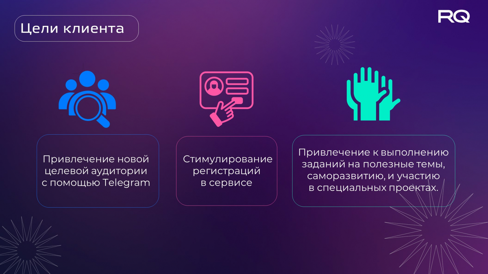Изначально у клиента не было числового KPI на привлечение новых пользователей, а также на выполнение заданий. Нашей основной задачей было информирование целевой аудитории о проекте.