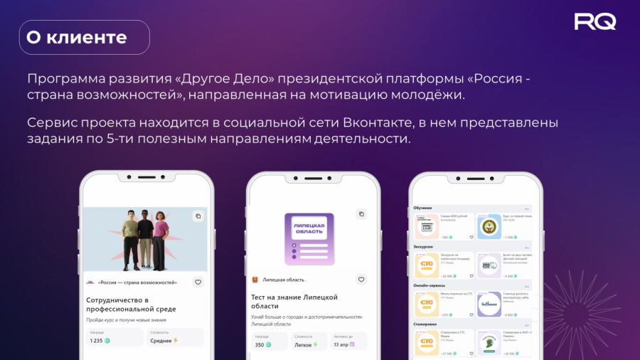 Программе развития «Другое Дело» президентской платформы «Россия — страна возможностей», направленной на мотивацию молодежи, было необходимо привлечь новую аудиторию. За решением этой задачи было решено обратиться к коммуникационному агентству