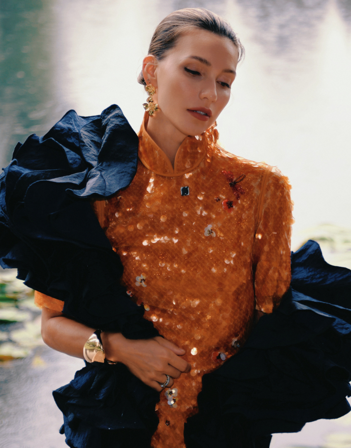 Образы дорабатывались совместно с личным стилистом Регины до самого съемочного дня и адаптировались на месте. Футуристичные и традиционные локации Шэньчжэня выигрышно перекликались с подобранными луками.